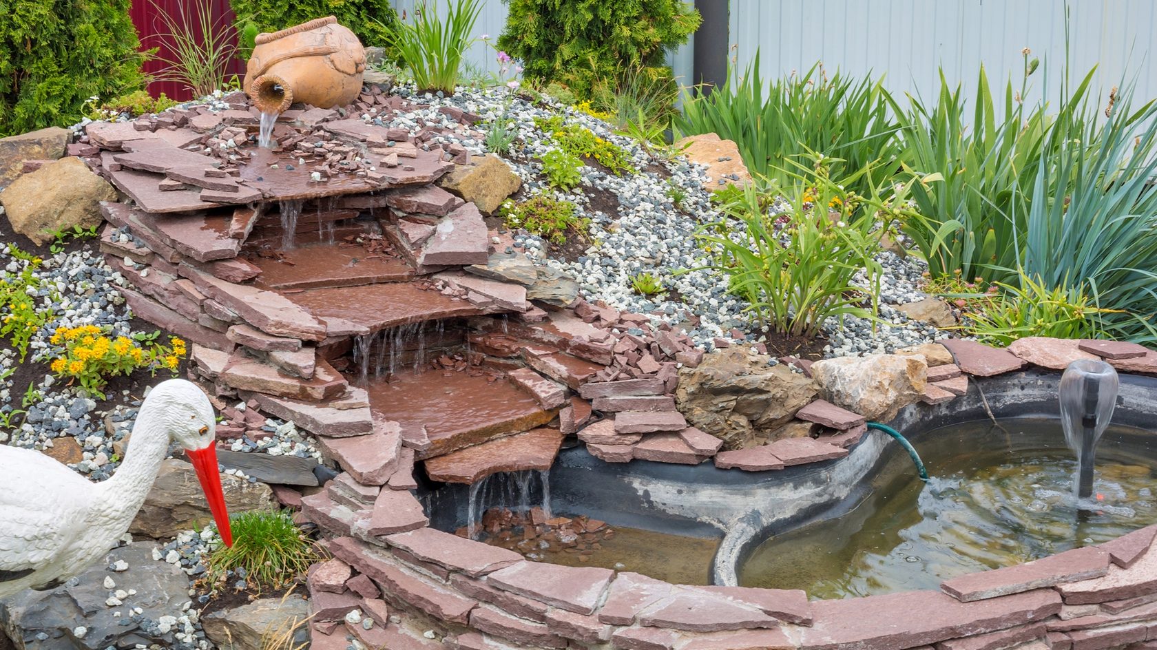 Создание декоративного пруда на даче с помощью крупной гальки