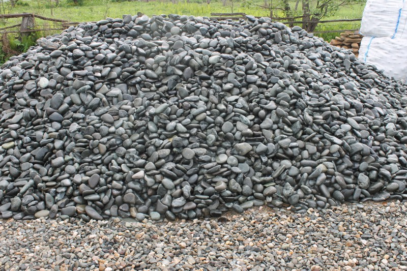 Галька горная речная окатанная (темно-серая)
