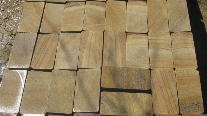 Kamenclub.ru: Форматный камень (плаха) пошаговая дорожка от 70-150 см (4 -12 см)  купить в Коломне плитняк  форматный плаха желтый песчаник 9 000 руб/т   фото КАМЕНЬ КЛУБ